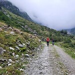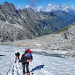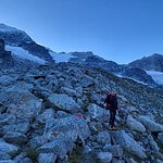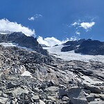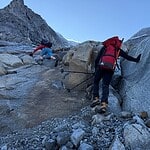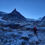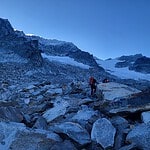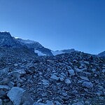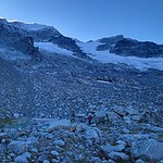 - auf halbem Weg zur Moränenkrone; der Eisaufstieg im Hintergrund wird sichtbar