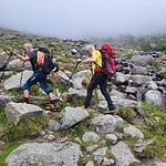 - erster Versuch des Aufstiegs am Grat zur Tribbachspitze; vereiste Blöcke erschweren das Fortkommen