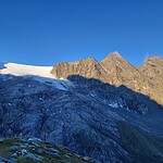 - immer einsehbarer wird das Floitenkees in der Nordflanke des Großen Löfflers; der Kleine Löffler findet sich des Morgens mit beleuchtetem Nebelsaum