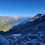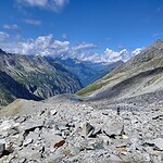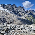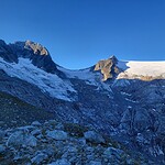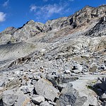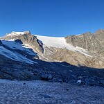 - die grobblockige Moräne von oben mit schön beleuchtetem Mörchnerkamm