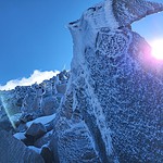 Schön anzusehen ist der Kampf zwischen Eis und Fels, das weichere Medium in seinem festen Aggregatzustand in der Lage zu beobachten das stets harte Medium mit dem Mittel der Bewegung über die Zeit zu lösen und dadurch abzubauen.