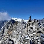 - epische Blicke auf konträr geformte Naturgebilde – schroffer Grat mit Zipfelkappe hinter rund geformtem Gletscherschliff, Buckelwalen gleich