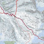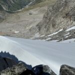 - die ersten ständigen Firnfelder auf dünnem Eis; in guten Jahren würde der Firn zu Gletschereis umgewandelt