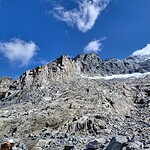 Über blockigem Terrain erreichten wir Felsgelände, knapp unterhalb des Eisrandes. Wie auch am Großen Möseler befindet sich der Eisrand etwa auf 2.700 m Seehöhe, durch die eher abgeschattete Lage vielleicht noch geringfügig darunter.