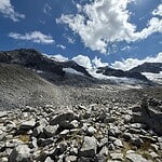 - wunderschöne großblockige Aufhäufungen der Moräne sind zu durchschreiten; im Hintergrund der Gletscher, den wir bald erreichen