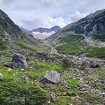 - Blick zum Aufstieg auf den Tribbachsattel, über den der Steig zum Schwarzenstein führt