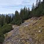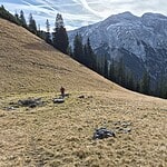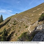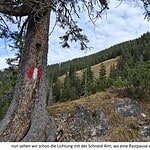 Alternativ dazu, bei zweifelhaften Verhältnissen, kann der wenig steile Rückweg zum Übergang in die Angernalm angetreten werden und über selbige abgestiegen werden. Diese Route führt ebenfalls zu den rätischen Inschriften, oder auch über die Klausbodenalm.