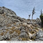 Interessant fanden wir den Gipfel hinterher auch beide, da zum einen der Steig nett angelegt ist und der Gipfel mit seiner Gestalt und Lage ein ansprechendes Ziel darstellt, zum anderen auch die rätischen Inschriften besichtigt und vor allem die Tour zur Runde durch das Ampelsbachtal ausgebaut werden konnten.