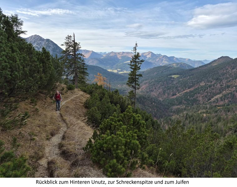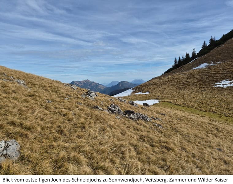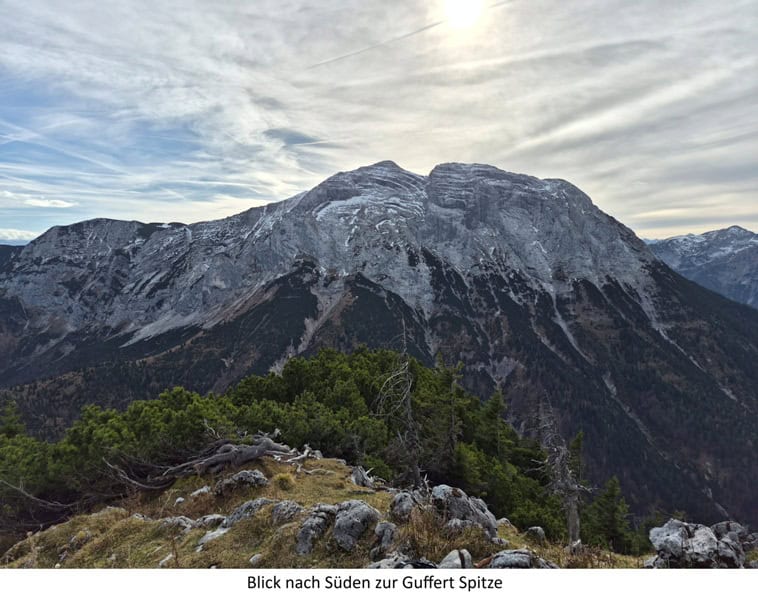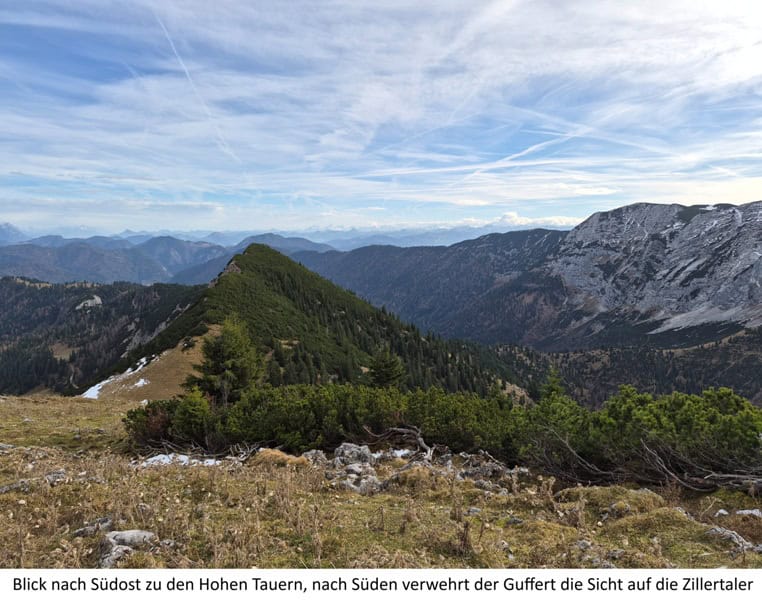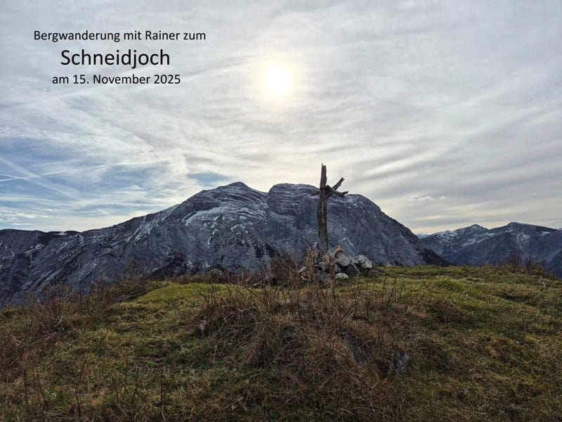 Die traditionelle Bergtour, die Hellmut und der Verfasser im Herbst zu unternehmen pflegen, führte uns heuer auf das Schneidjoch. Dieses ist ein moderat hoher Berg in den Brandenberger Alpen und wurde aus einer Kombination von Schneelage und dem Wunsch von Hellmut ausgewählt – es sollte ein Anstieg ohne Kletternotwendigkeit oder extreme Steilstufen unternommen werden. Im nördlich gelegenen Schatten des mächtigen Gufferts fand der Autor einen interessanten Aufstieg, den Hellmut aus ein paar Vorschlägen in den Brandenberger Alpen auswählte.