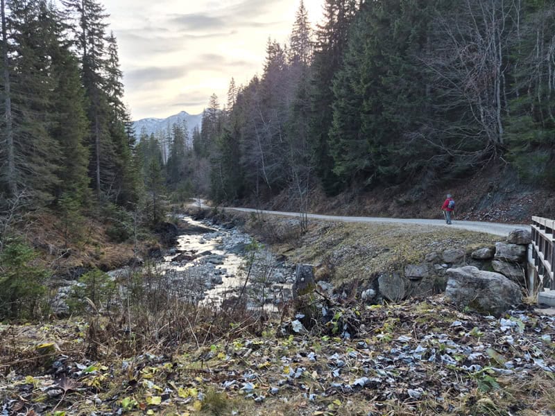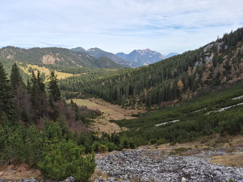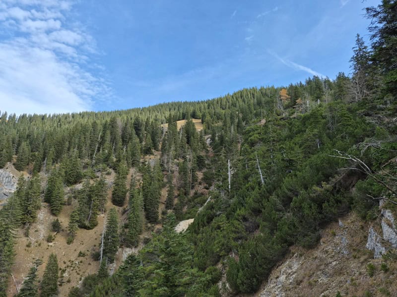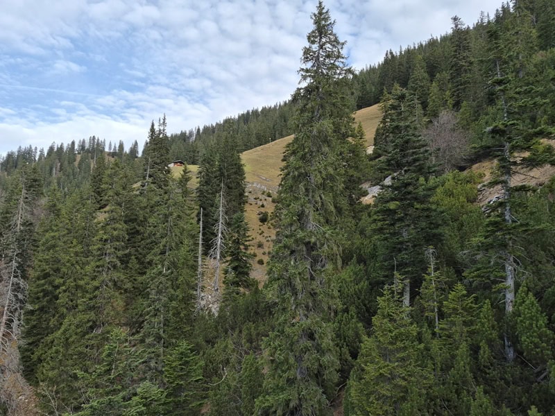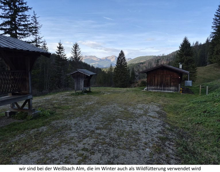 Vorbei am Stall der „Niedig Alm“ auf einer großen Weide führt der Weg in das Weißbachtal und endet an der Weißbachalm, an der groß angelegten Futterkrippen für Rotwild und Reh zu sehen sind. Dieses Anlage befindet sich mitten in der Schutzzone dieses Wilds und dort endet die Schotterstraße.