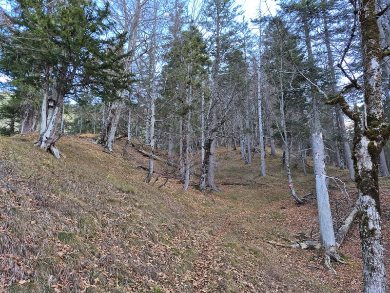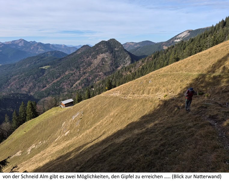 Beim Begehen mit Schneeschuhen muß für den Aufstieg aufgrund der Hangneigung im Bereich der Schneidalm und beim Abstieg über den Westrücken des Gipfels die Lawinensituation beachtet werden. Bei Letzterem empfiehlt sich über den ausgesetzten Abschnitt die Begehung bei Schnee neben den Latschen auf der Kammhöhe, anstelle in der steilen Flanke, siehe Bilder 42 bis 44.
