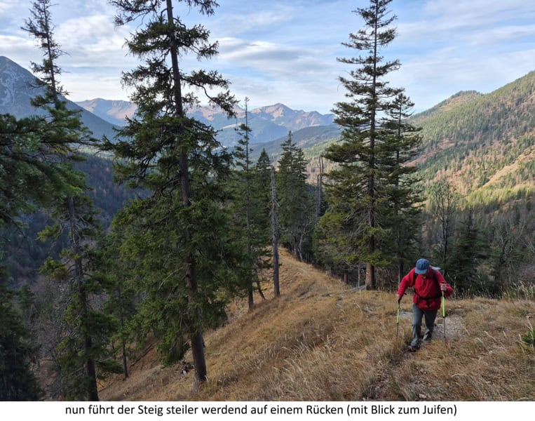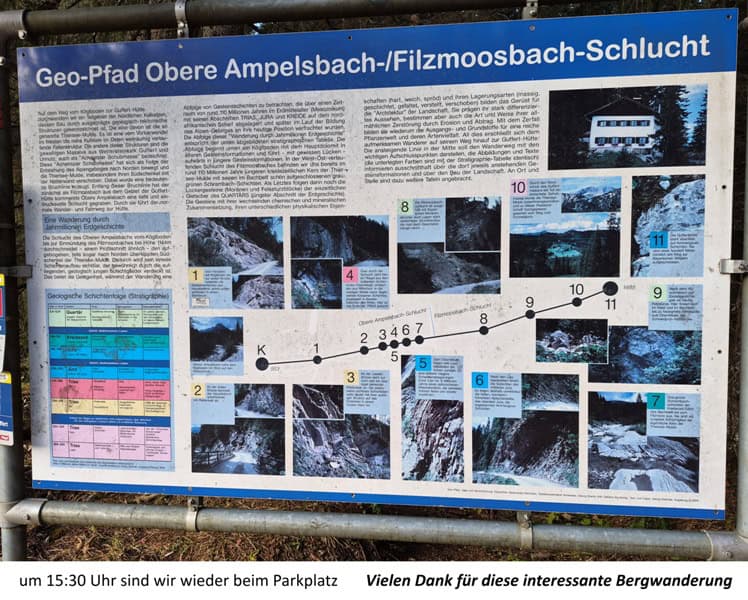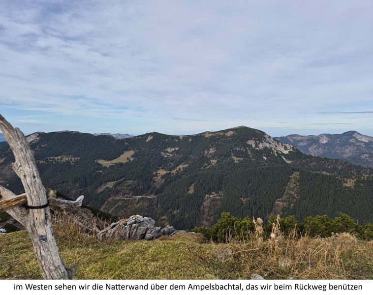 Interessant fanden wir den Gipfel hinterher auch beide, da zum einen der Steig nett angelegt ist und der Gipfel mit seiner Gestalt und Lage ein ansprechendes Ziel darstellt, zum anderen auch die rätischen Inschriften besichtigt und vor allem die Tour zur Runde durch das Ampelsbachtal ausgebaut werden konnten.