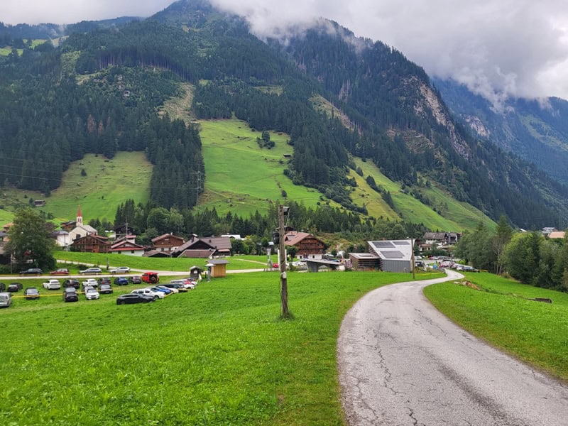 - auf der Straße ins Floitental, Rückblick auf das ehemals idyllische Ginzling