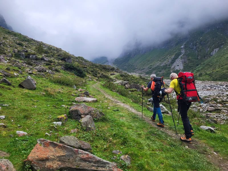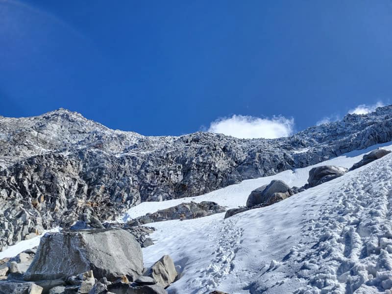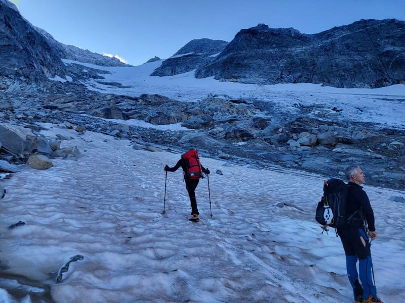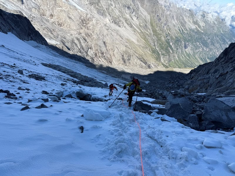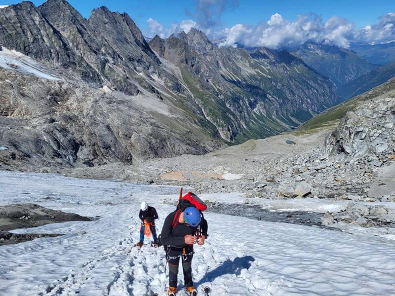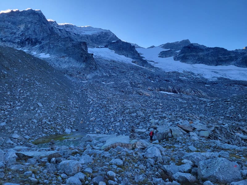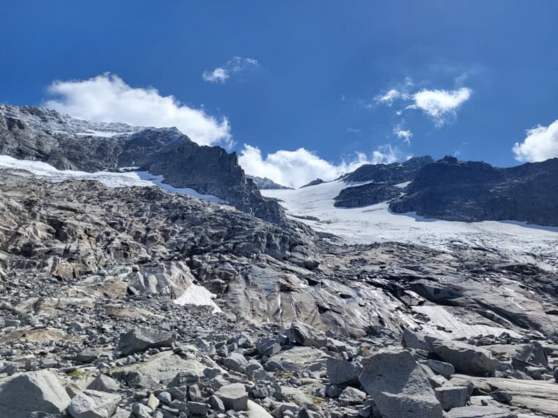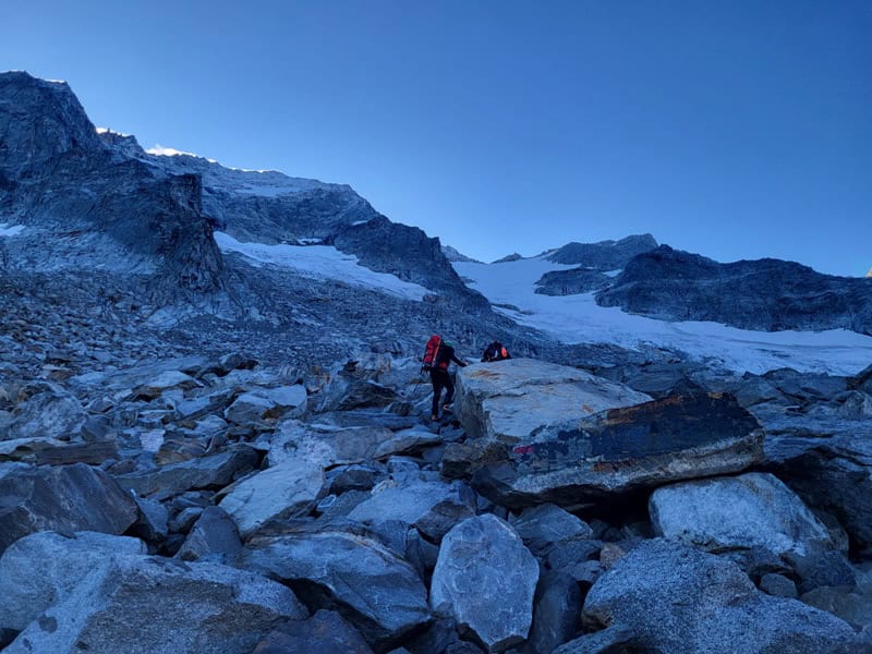 - auf halbem Weg zur Moränenkrone; der Eisaufstieg im Hintergrund wird sichtbar