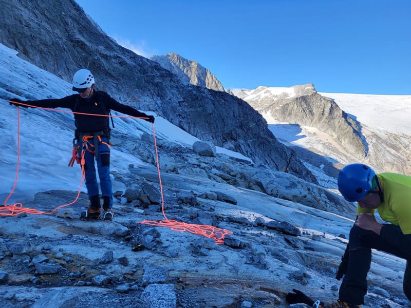 - im unteren Teil des Abstiegs vom Floitenkees; die Sicherung wird verstaut