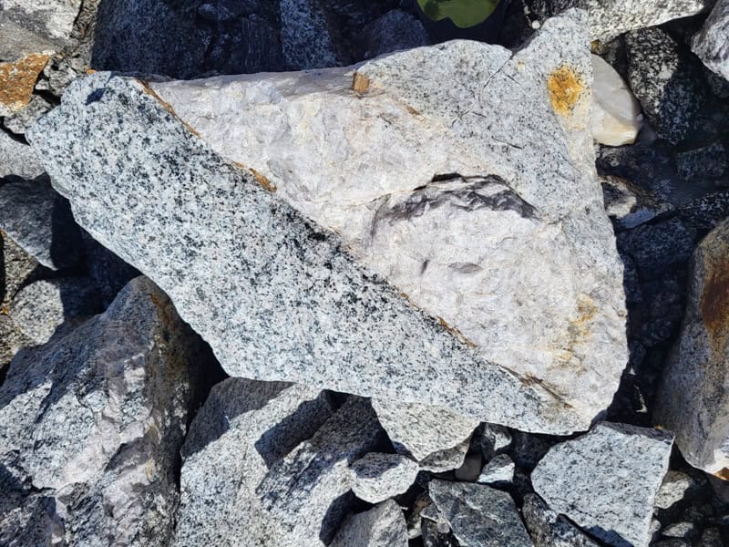 - Zeit für Naturbeobachtungen – hier Xenolithen verschiedener Provenienz (in Metatonalit?)