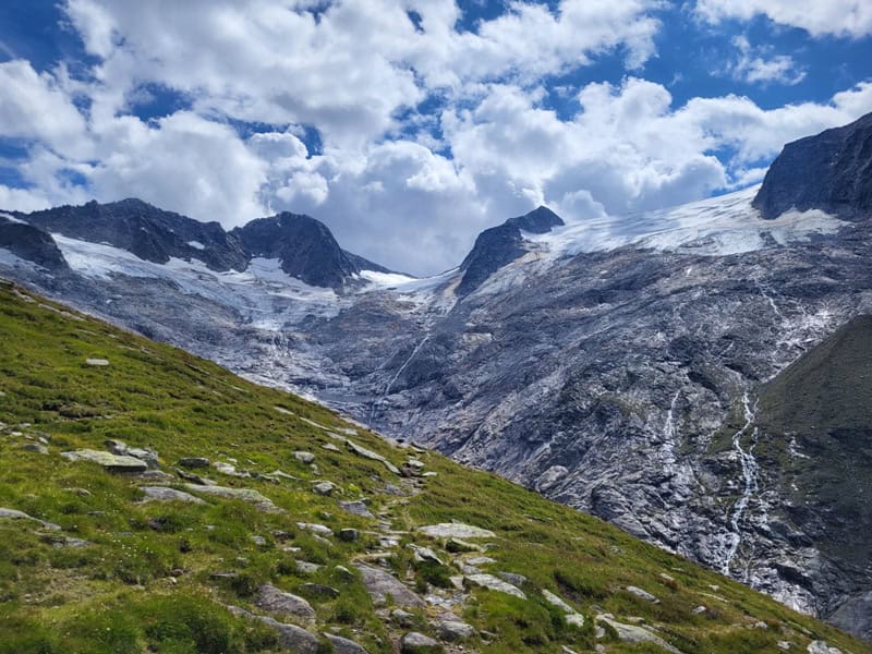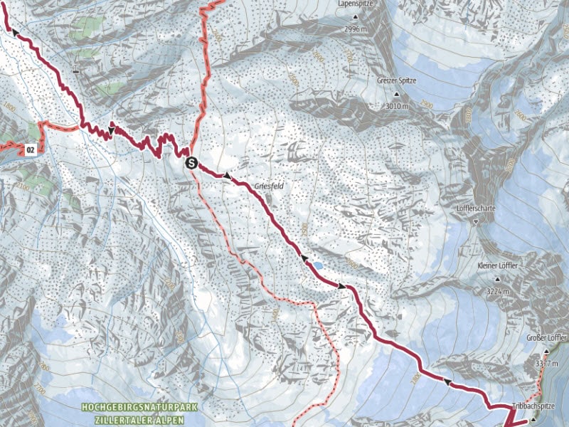 - Blick zum Aufstieg auf den Tribbachsattel, über den der Steig zum Schwarzenstein führt