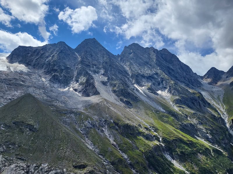 Wenigsten hatten sie während des Aufstiegsversuchs ein paar Bilder der Aussicht vom Grat angefertigt und die schöne Kulisse zum Schwarzenstein sowie zum Großen Mörchner und ins Ahrntal festgehalten.