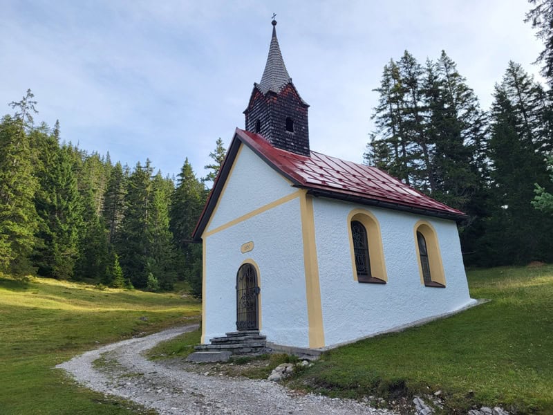 Vom Parkplatz bei der Sinnes Waldrast, die mit ihrem Flair in jedem Fall zur Einkehr bei der Rückkehr genutzt werden muß, ging unsere Reise los. Moderat steil durchzieht ein durch ein breites Rinnsal unterbrochener Steig den Natzwald nach Sinnesbrunn. Wir fanden dort wieder einen Parkplatz vor und setzten den Aufstieg zur Sinnes Wallfahrtskapelle „Unsere Liebe Frau“ von Johann Gapp, der 1777 einen ersten Bau davon errichtete, fort.