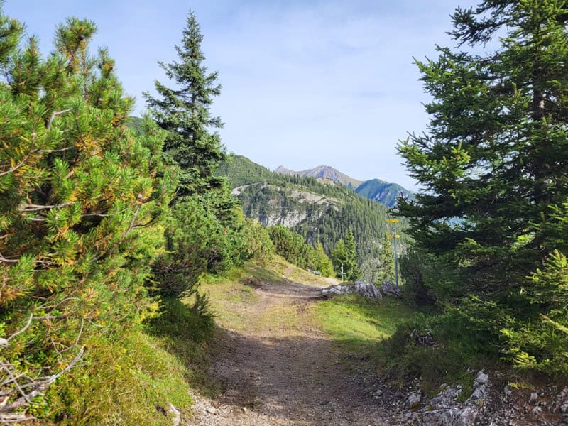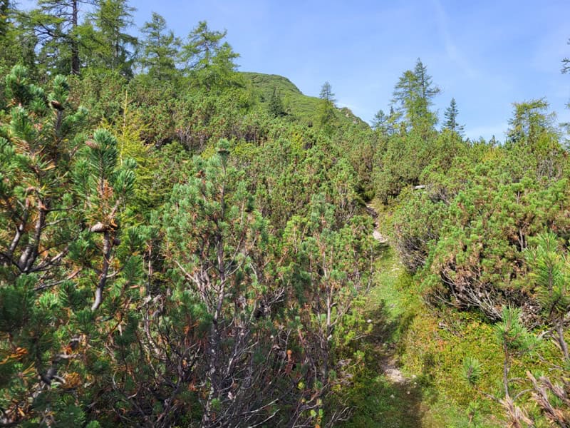 - zuerst eine lange Strecke im Latschengürtel bergauf