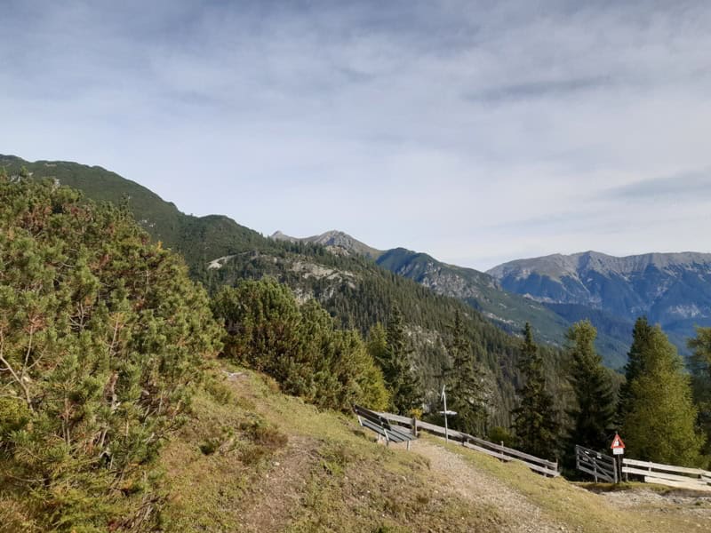 - herrliche Ausblicke vom Gurgltal über den Holzleiten Sattel bis zur Martinswand; im Vordergrund der Kohlstattsee