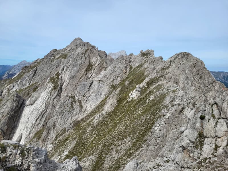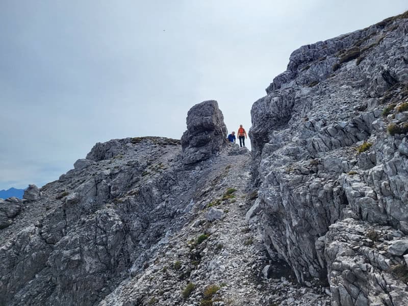 Wir bewältigten den überaus netten Grat mit seinen 210 geodätischen Höhenmetern, die sich durch seine Zerrissenheit auf 490 Aufstiegsmeter steigerten, mit großer Freude über nette Zacken hinweg und auch über leicht ausgesetzte Stellen, die die Großartigkeit der Berge der Heimat in derber Freundlichkeit widerspiegeln. Herbstliche Sonnenbestrahlung am Weg verlieh dieser interessanten Bergfahrt dauerhaften Einbrand ins Gedächtnis, ein bäriges Erlebnis.