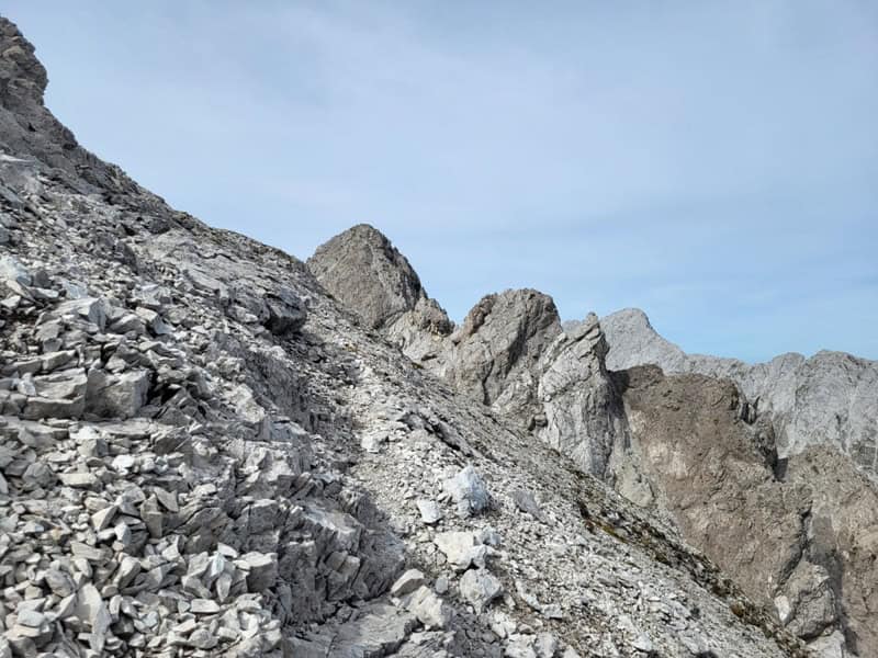 - eine letzte längere nordseitige Gratumgehung wird angetroffen
