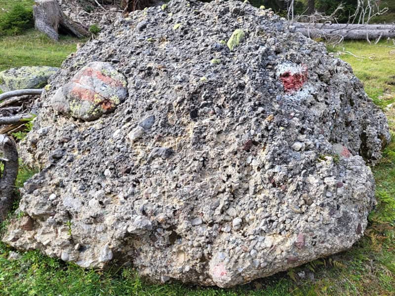- erratischer Block am Abstieg nach der flachen Freifläche auf Kote 1.580 m