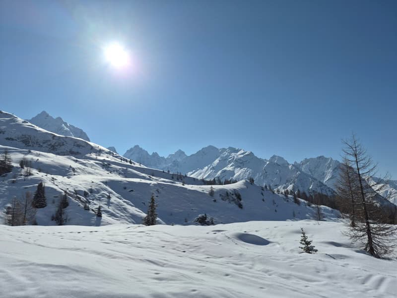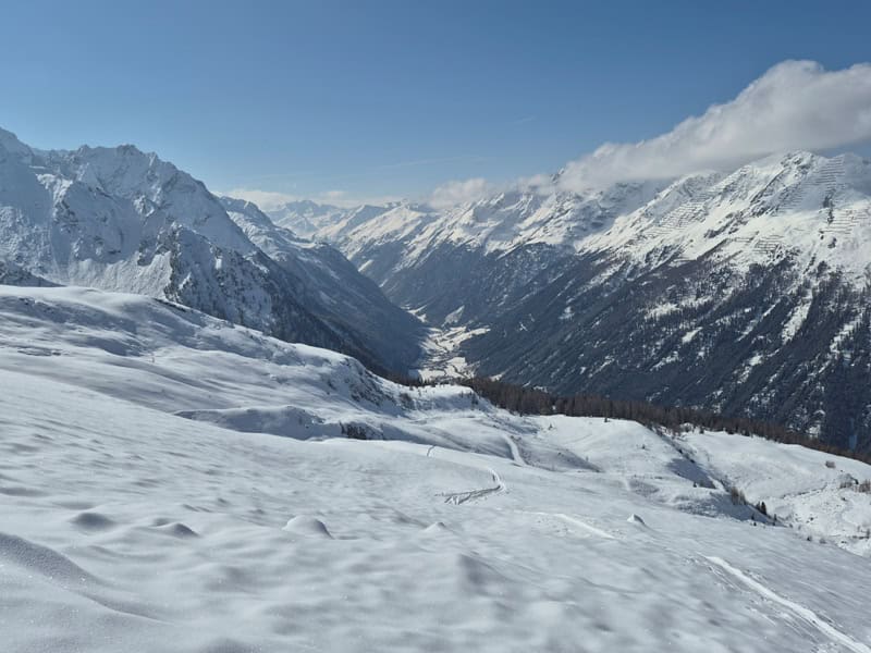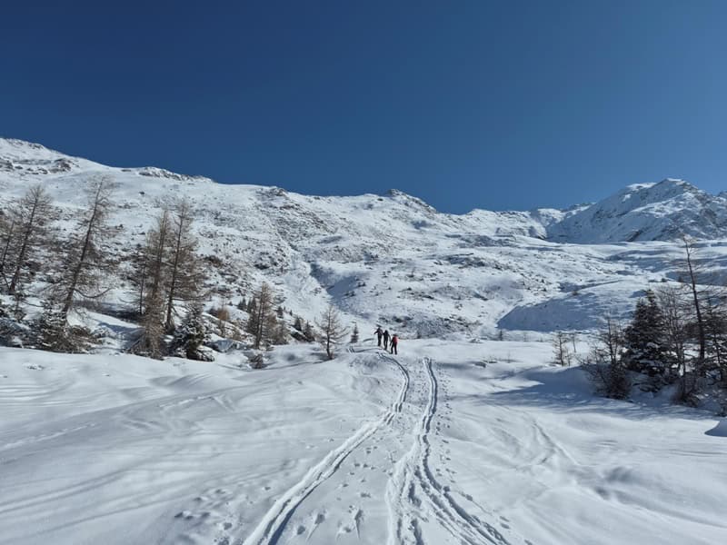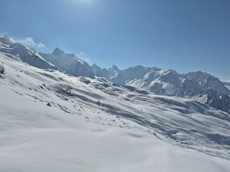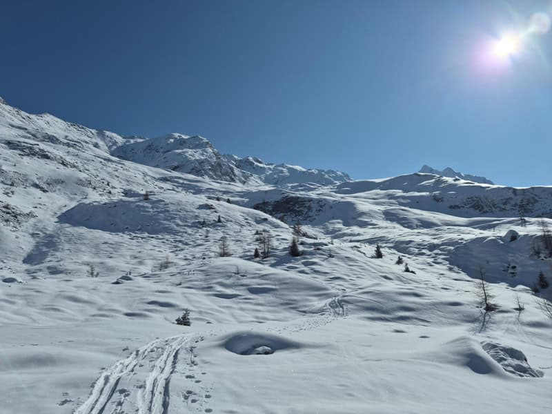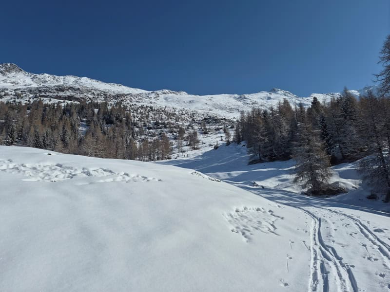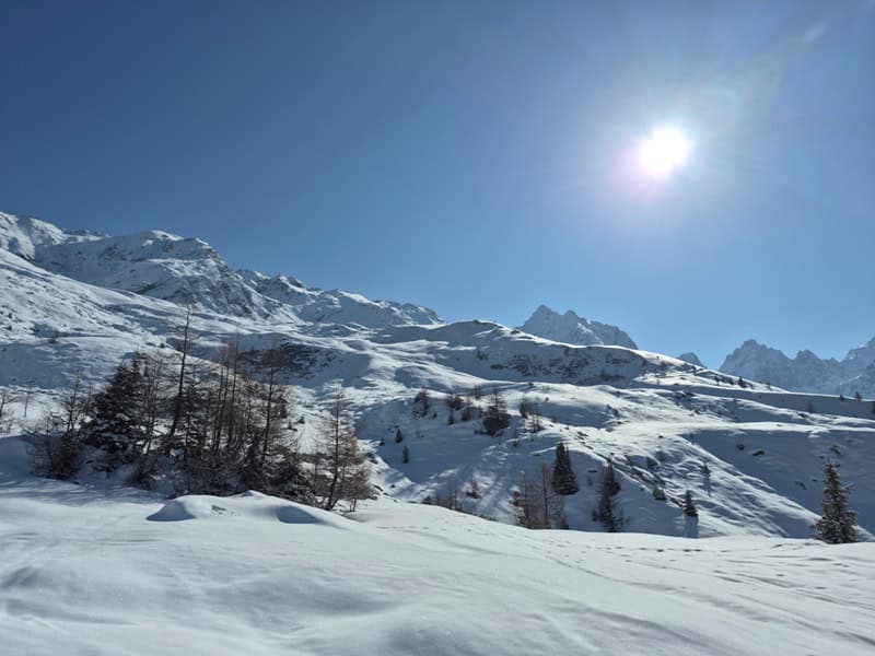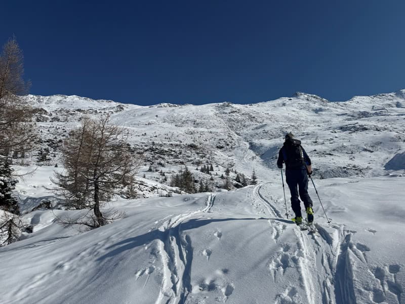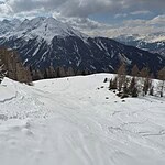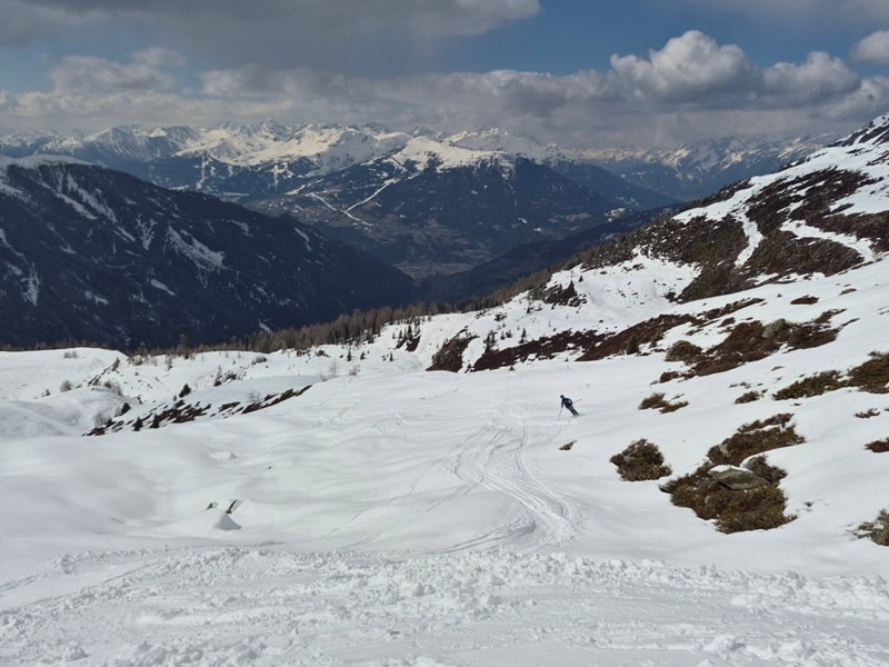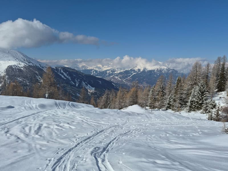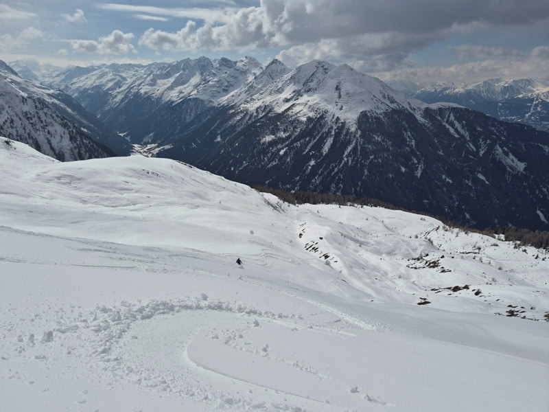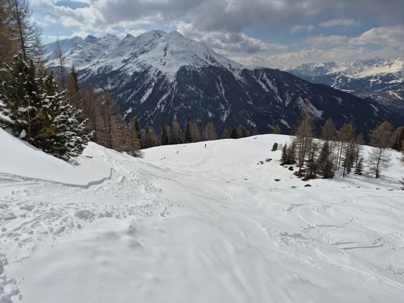 - noch weite, freie Abfahrtshänge vor der Falkaunsalm