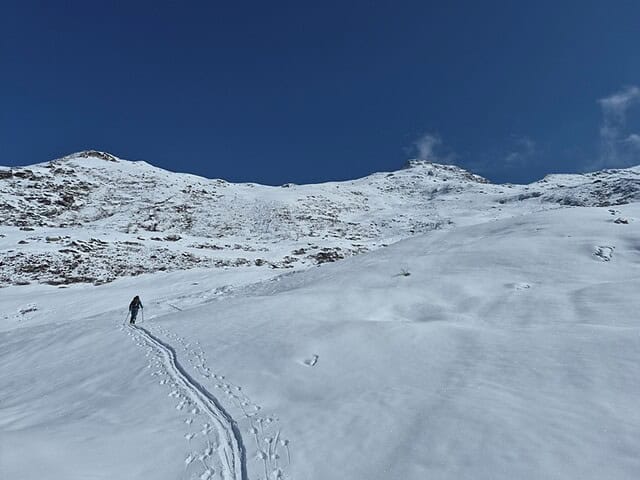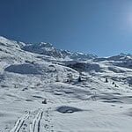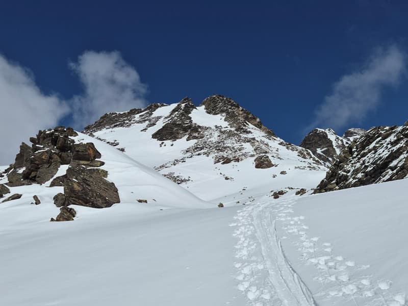 - Gsallkopf Nordseite, über die beleuchteten Hänge führt die Schitour