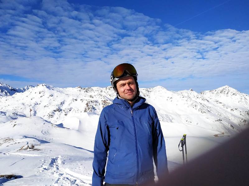 Martin vor den Gipfeln des Trennkammes zum Voldertal – ganz rechts der Malgrübler