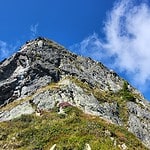 Wie meist bei Umgehungen in den Flanken wurde unsere Erwartung erfüllt, vor allem Andi, der den alpinistisch saubereren Weg vorgeschlagen hatte, schimpfte wie ein Rohrspatz ob der sehr steilen Grashänge und die direkte Aufstiegsrinne mit großblättrigem, kniehohem Alpendost durchzogen, wollte er partout nicht nehmen.