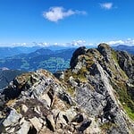 - ein letzter Zacken wird überquert, der hinten steil und kurz auf den milden Gratkamm abbricht